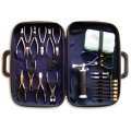 12 pinzas 8 Desarmadores:1 soplete para soldar1 estuche de tornillos1 microfibraEstuche mediano de Nylon con mango tipo portafolios negro